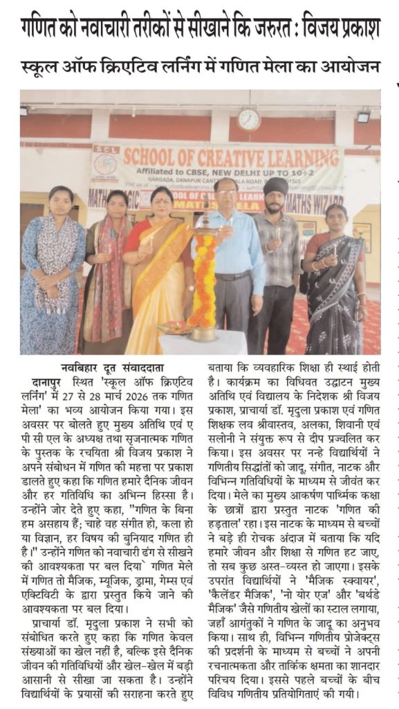 What happens when you take mathematics out of a dusty textbook and bring it onto a stage, into a game, or through a magic trick? You get the Mathematics Fair (Ganit Mela)—a vibrant, two-day celebration of logic and creativity held at the School of Creative Learning, Danapur, on March 27th and 28th, 2026. The event wasn’t just about solving equations; it was about proving that mathematics is the heartbeat of our daily lives.